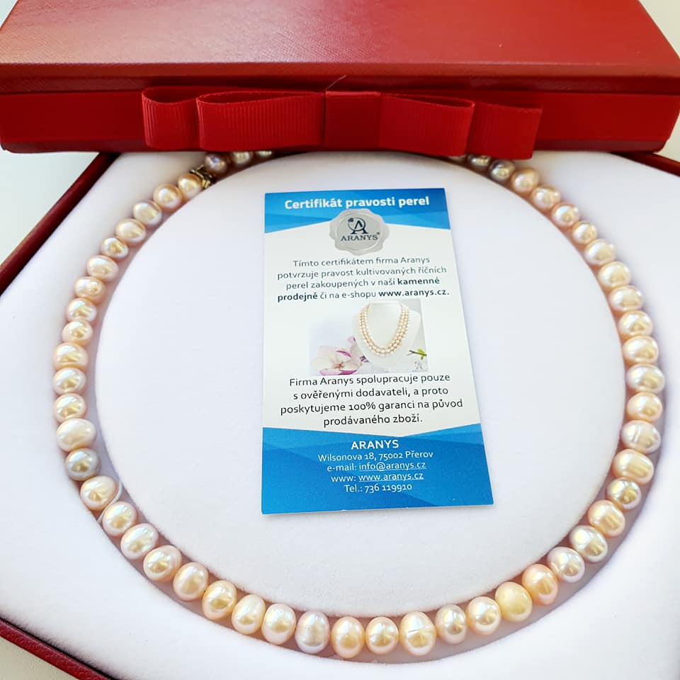 Perlový náhrdelník. Samozřejmě všechny šperky dodáváme s certifikátem pravosti. Krabička na perlový náhrdelník nám umožní pěkné zabalení.