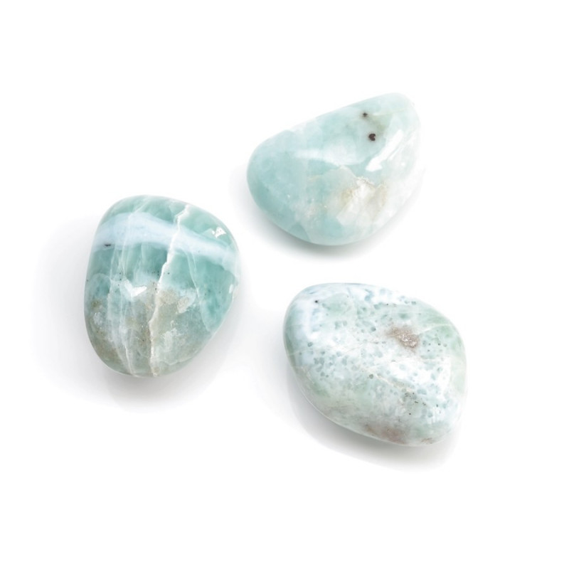 Vlastnosti: Larimar nebo také “kámen delfínů” a bohů byl objeven teprve v nedávné době, přesto je velice ojedinělý, vzácný a velmi silný. Odbourává sklon k chování, jímž si jeho majitel sám škodí - zejména zvyk zaujímat pózu mučedníka. Zvláště užitečným je při potlačování pocitu viny a odstraňování strachu. Pokud jej budete nosit v dobách plných stresu a nevyhnutelných změn, dokážete všem nepříjemnostem čelit s vyrovnaností. Larimar nás chrání od falešných přátel, nevěry a negativních vlivů. Navrhuje nám nové inspirace. Zvyšuje mozkovou činnost. Dokáže vyléčit rány, které pocházejí ze vztahů minulých. Pomáhá nám převzít kontrolu nad vlastním životem. Je vynikajícím pomocníkem ve stresových situacích - pomůže nám zvládnout je s vyrovnaností, podporuje tvořivost. Na mentální úrovni zajišťuje Larimar klidné, jasné a konstruktivní přemýšlení. Podporuje tvůrčí schopnosti a dodává odvahu vrhnout se do proudu událostí a plavat s ním. Rovněž je velmi nápomocný pro ženy, aby se lépe naladili na svou ženskost a obnovili jejich spojení s přírodou. Učí nás povznést se nad minulostí a dá sílu se s minulostí rozloučit, vyléčit bolavá místa v partnerských zklamáních. Pomáhá nám získat nadhled.